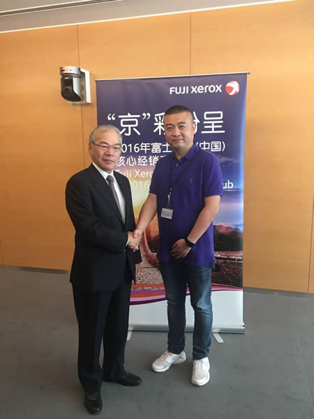 江蘇科嘉總經(jīng)理蔣潔譽(yù)先生(右)與富士施樂(lè)總裁山本忠人(Tadahito Yamamoto)先生(左)合影